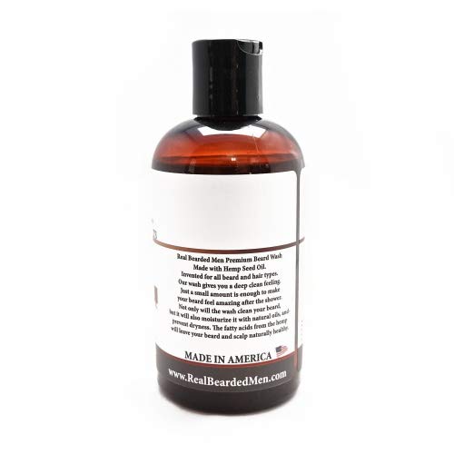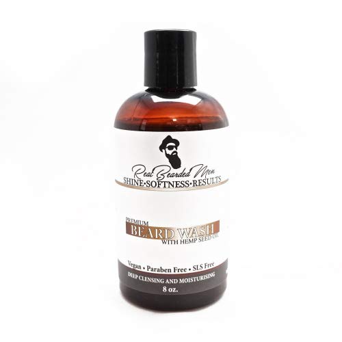 Details: Real Bearded Men Premium Beard Wash made with hemp seed oil. Invented for all beard and hair types. Our wash gives you a deep clean feeling. Just a small amount is enough to make your beard feel amazing after the shower. Not only will the wash clean your beard, but it will also moisturize it with natural oils, and prevent dryness. The fatty acids from the hemp will leave your beard and scalp naturally healthy. OUR HEMP BEARD WASH IS 100% NATURAL *****REAL BEARDED MEN BEARD WASH IS PARABEN FREE AND SLS FREE***** Directions: Shake well before use. Apply a small amount into hands and lather throughout the beard. Leave in for 2 minutes before rinsing to obtain ultimate results and equip your bead! Ingredients: Water, Potassium Citrate, Potassium Palm Kernal Acid, Potassium Oleate (Derived from Organic Sunflower Oil), Potassium Cocoate (Derived from Organic Coconut Oil), Cold Pressed Hemp Seed Oil, Apricot Oil, Vitamin E, Unique Blend of Essential Oils for Fragrance. ********REAL BEARDED MEN BEARD WASH IS PARABEN FREE AND SLS FREE*********